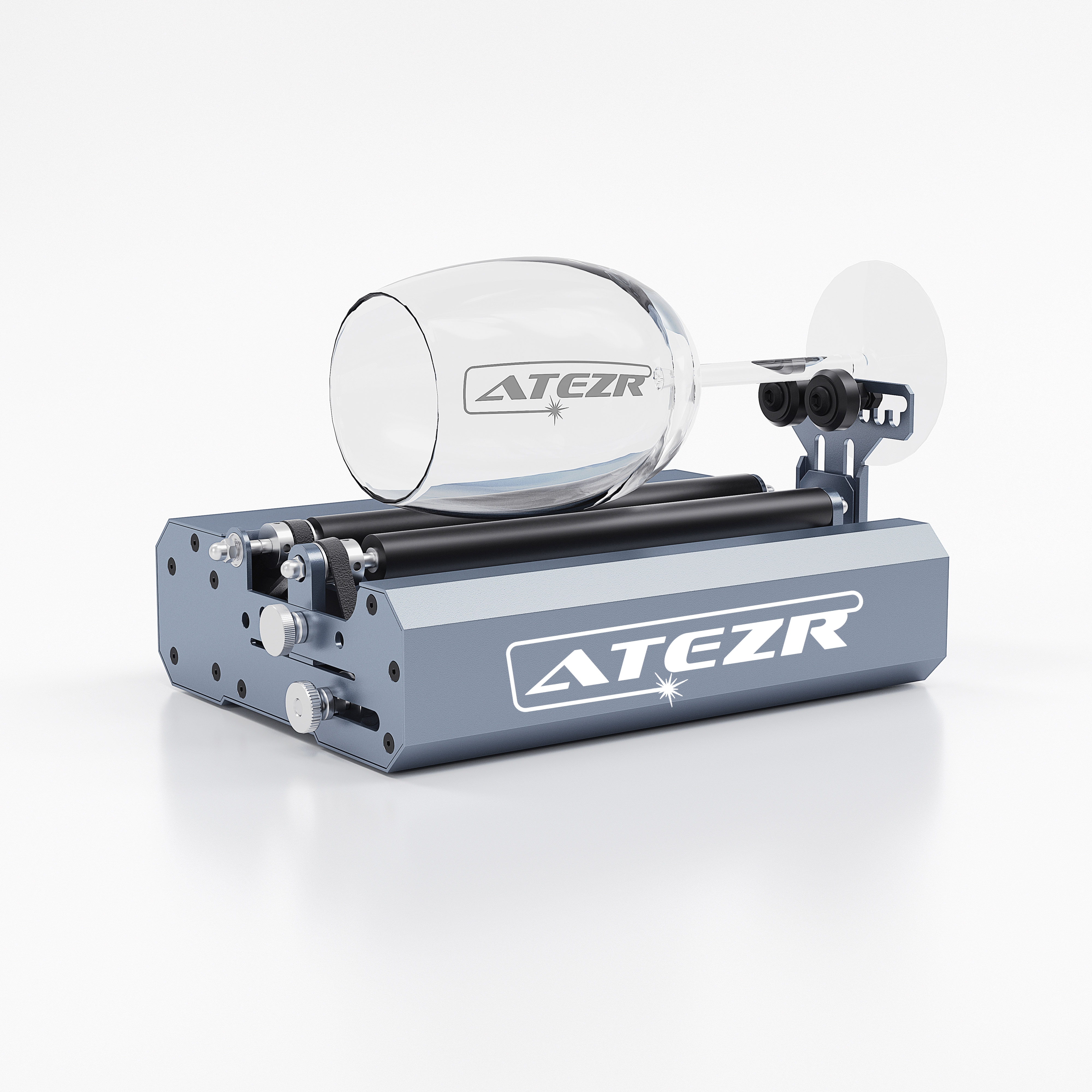 - 360° rotating rubber roller - Atezr laser rotary axis is wrapped in a rubber material that is less prone to wear and tear. It increases the stability of the engraved item when you use the engraver to rotate the item 360 degrees.