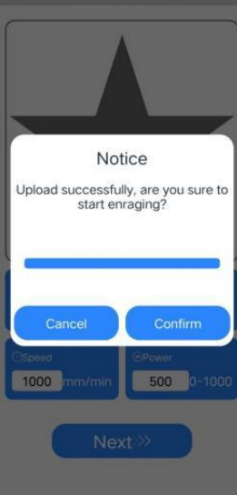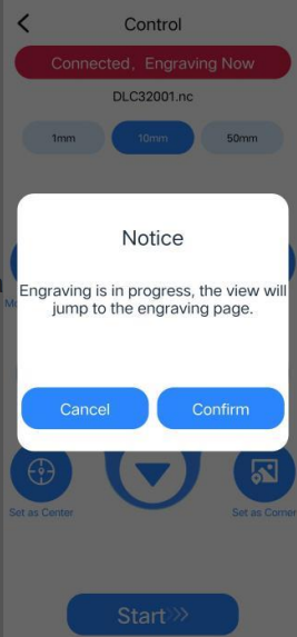 Step 9: Tap the Confirm button to start engraving (if you tap Cancel, the machine will stop working).